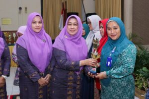 Tropi dan sertifikat diserahkan kepada pemenang oleh Ketua TP PKK Kabupaten Siak Rasidah, Ketua I Ananda Laila Putri, Ketua II Kamizah, Ketua III Syarifah Raudah, dan Ketua IV Nursida.