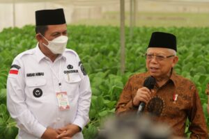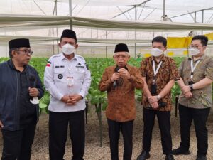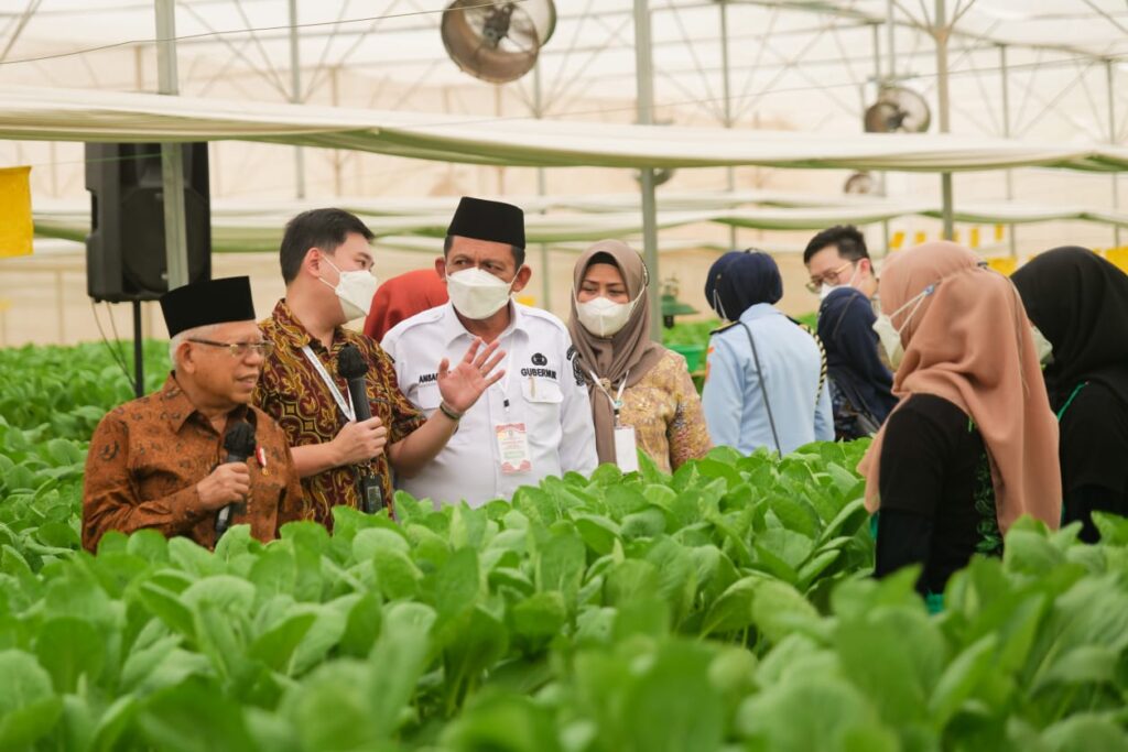 Pada kesempatan ini Wapres Ma’ruf Amin bersama Gubernur Ansar meninjau proses produksi sejumlah komoditas sayur hasil pertanian yang dikembangkan dengan sistem hidroponik modern sehingga menghasilkan produk sayuran berkualitas tinggi dan baik.