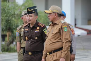Bertindak selaku Inspektur Apel Bupati Siak Alfedri, dengan Perwira Apel Kasat Sabhara Polres Siak AKP Cecep Sujapar dan Komandan Apel Letnan I Makodim 0322/Siak Arhanud Jhonson Nainggolan.
