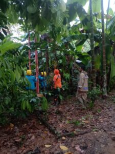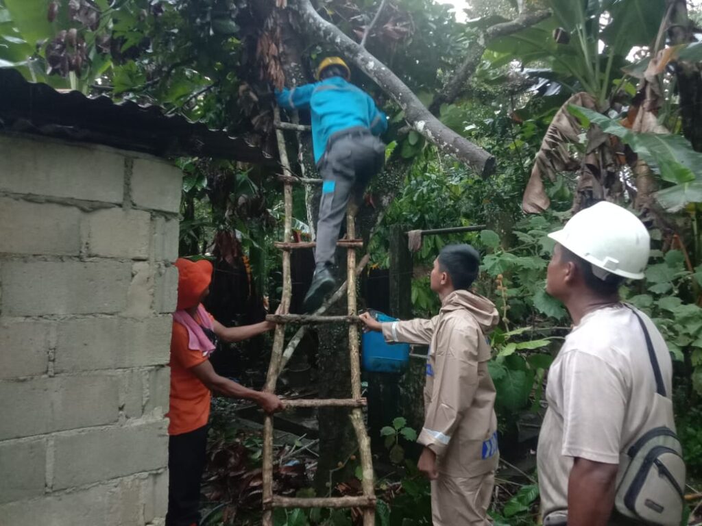Akibat hujan deras disertai angin hingga rumah warga rusak akibat pohon nangka tumbang menimpa bagian dapur rumah milik ibu rumah tangga Maimun. Mengalami kerusakan hingga tempat WC nya ambruk. setelah mendapat informasi dengan gerak cepat Babinkamtibmas tim BPBD dan Marwan selaku Manager melalui petugas PLN Dabo mengambil tindakan tegas jangan sampai terjadi hal-hal yang tidak diinginkan,