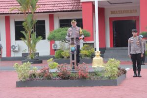 Kapolres Lingga AKBP Robby Topan Manusiwa, S.I.K memimpin kegiatan apel pagi yang di laksanakan dilapangan apel Polres Lingga,