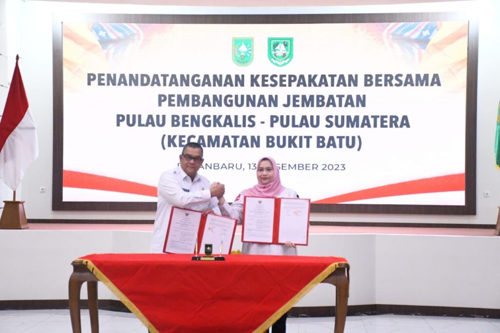 Bupati Kasmarni dan Gubernur Riau Tandatangani Kesepakatan Pembangunan Jembatan Sungai Pakning-Pulau Bengkalis