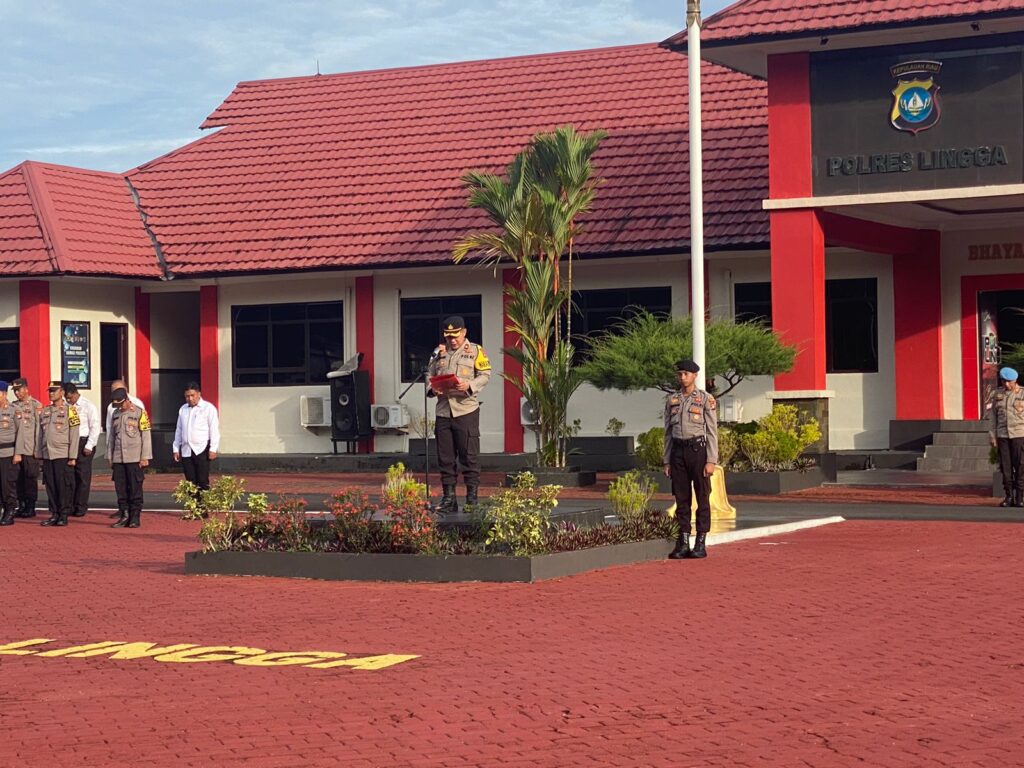 Wakapolres Lingga KOMPOL Adi Sumardi, S.Kom mengajak seluruh Personil Polres Lingga untuk meningkatkan disiplin dan kinerja sesuai tugas pokoknya masing-masing serta meningkatkan pelayanan kepada masyarakat guna menjadikan transformasi Polri yang Prediktif, Responsibilitas, Transparansi berkeadilan.