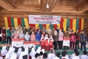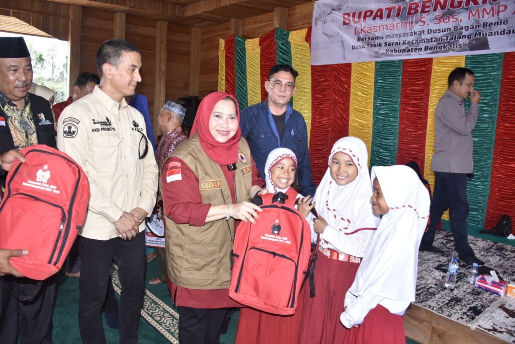 Pada kesempatan itu juga Bupati Kasmarni menyerahkan sejumlah bantuan untuk masyarakat Dusun Benio Desa Tasik Serai Kecamatan Talang, tepatnya di Pesantren Nurul Azhar.