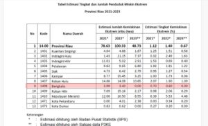 Menurut Tim Koordinasi Penanggulangan Kemiskinan Daerah Rinto, Kamis 7 Maret 2024, terhitung sejak 2021 angka kemiskinan di Kabupaten Bengkalis turun pesat dari 0.70 persen menjadi 0.60 persen pada 2022. Puncaknya 0 persen pada 2023.