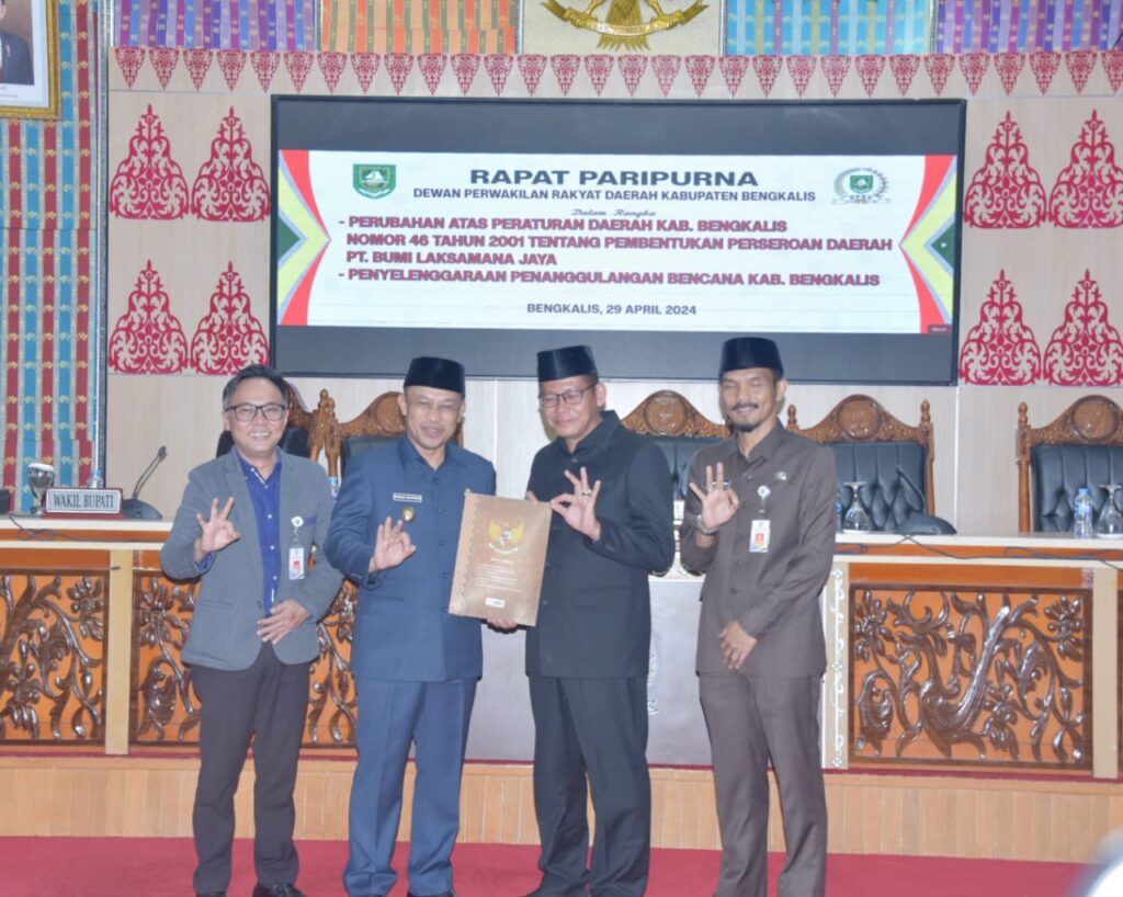 Dalam penyampaian pidato Bupati Bengkalis dibacakan Wabup H. Bagus Santoso mengatakan, dalam rangka mewujudkan tata kelola perusahaan daerah yang lebih baik, terinci dan terarah, sesuai dengan ketentuan peraturan perundang-undangan yang terbaru, maka perlu dilakukan perubahan regulasi atas Peraturan Daerah Kabupaten Bengkalis Nomor 46 tahun 2021 tentang Pembentukan Perseroan Daerah PT. Bumi Laksamana Jaya, berdasarkan kewenangan atribusi dan ketentuan peraturan perundang-undangan yang ada saat ini.
