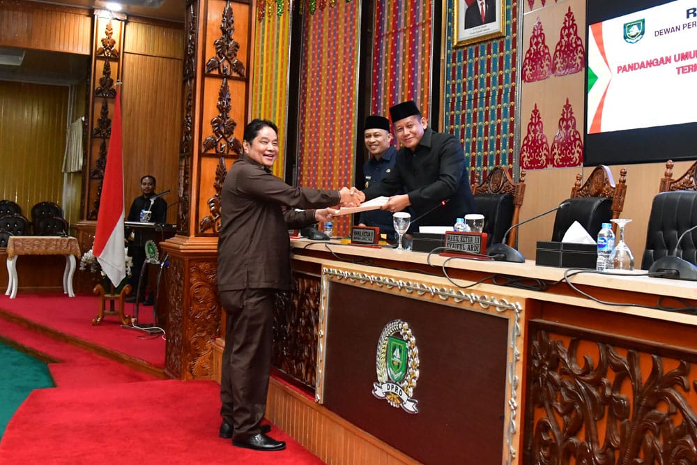 Kemudian fraksi PAN menunjuk anggota DPRD Zainal untuk menyerahkan pandangannya kepada pimpinan rapat. Disusul fraksi Gerindra diwakili Adihan.