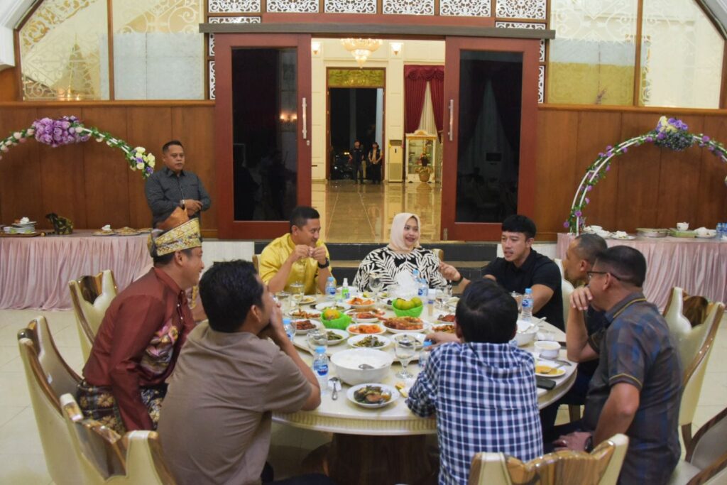 BENGKALIS,sempenanews.com – Bupati Bengkalis Kasmarni bersama Wakil Bupati Bengkalis H. Bagus Santoso jamu makan malam bintang tamu Grup Band Repvblik asal Bogor Indonesia, Sabtu 6 Juli 2024 malam, bertempat di ruang VVIP Wisma Daerah Bengkalis.