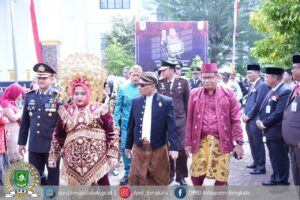 Bupati Bengkalis Kasmarni selaku Inspektur Upacara dengan anggunnya menggunakan Pakaian Adat Minang Kabau, sedangkan Wakil Ketua DPRD Sofyan dengan gagahnya menggunakan pakaian adat Jawa sekaligus dipercaya untuk membacakan Teks Proklamasi, begitu juga Wakil Bupati Bagus Santoso dengan tampannya menggunakan pakaian adat Jawa.