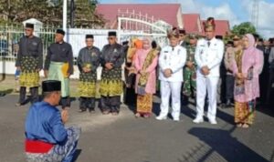 Kedatangan Bupati dan Wakil Bupati Lingga, Muhammad Nizar S. sos dan Ir. Novrizal, S.T., M.IP, disambut oleh Sekretaris Daerah Kabupaten Lingga, H. Armia, S.Pd.M.IP, serta seluruh Asisten dan Kepala OPD Pemerintah Kabupaten Lingga, bersama Forkompinda Kabupaten Lingga.