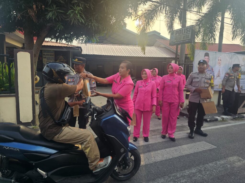 Peringati HUT Polda Kepri Ke-20, Kapolsek Meral AKP Adi Candra, S.H., M.H. Beserta Bhayangkari Bagikan Takjil