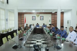 Kisaran, sempenanews.com – Forum Koordinasi Pimpinan Daerah (Forkopimda) Kabupaten Asahan mengikuti Rapat Koordinasi Nasional secara virtual yang dipimpin oleh Menteri Dalam Negeri Republik Indonesia, Muhammad Tito Karnavian. Kegiatan berlangsung di Aula Mawar Kantor Bupati Asahan dan dihadiri oleh Bupati Asahan, Wakil Bupati Asahan, Ketua DPRD Asahan, Kepala Kejaksaan Negeri Asahan, Kapolres Asahan, Dandim 0208/Asahan, para Kepala OPD, Kepala Kantor Kementerian Agama Asahan, serta Bulog Cabang Asahan. Rakor ini diselenggarakan sebagai langkah antisipasi menghadapi Natal 2025 dan Tahun Baru 2026 (Nataru), khususnya potensi kerawanan akibat tingginya mobilisasi masyarakat dan ancaman bencana hidrometeorologi.